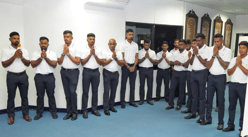 සර්ව ආගමික වතාවත්වලින් අනතුරුව ශ්රී ලංකා කණ්ඩායම පෙරේදා මධ්යම රාත්රියට ආසන්න වෙද්දී ක්රිකට් මූලස්ථානයෙන් පිටත්ව ගියේය.